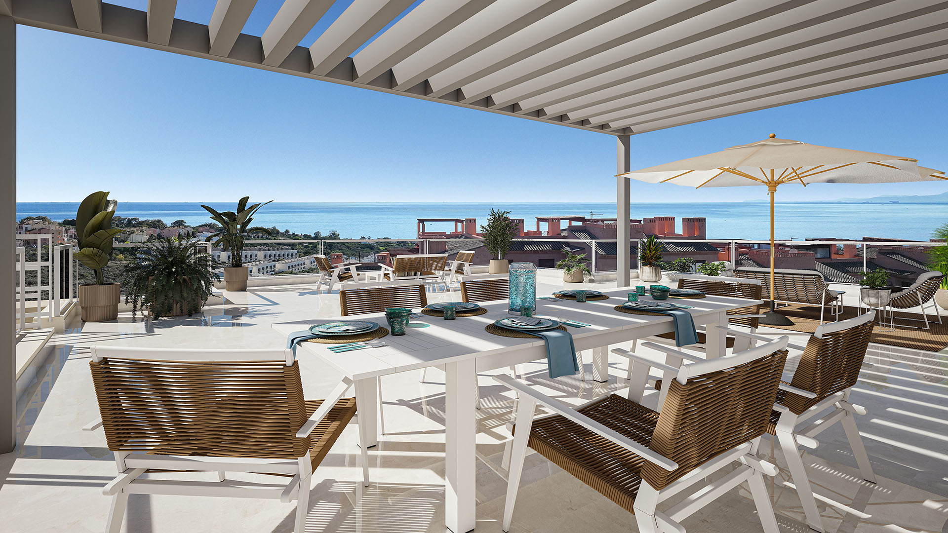 This newly built apartment for sale in Manilva forms part of a new residential development, situated in the exclusive Bahía Las Rocas neighbourhood, a prime location between Punta Paloma and Chullera. This area is renowned for its tranquil beaches, authentic beach bars and the stunning, natural coastline with impressive views of the Mediterranean Sea, making it an ideal spot for those seeking peace and a genuine Mediterranean atmosphere. The development offers a selection of two- and three-bedroom apartments, designed with an eye for comfort, quality of life and optimal orientation. The properties feature two fully fitted bathrooms and face south-east or south-west, allowing them to make the most of natural light and, in many cases, offering stunning sea views. This means you can enjoy the unique coastal landscape from the comfort of your own home every day. Each home features a spacious terrace that flows seamlessly into the living area, whilst certain apartments also offer a private garden or a solarium, depending on the type. In addition, exclusive penthouses are available with generous solarium terraces, ideal for relaxing in complete privacy and enjoying the views and the climate. The communal areas have been carefully designed to encourage relaxation and socialising, with a strong focus on outdoor living. The residence is fully enclosed and features, amongst other things, swimming pools, a multi-purpose space fitted out as a gym and lounge, and extensive, beautifully landscaped gardens. All this creates a harmonious living environment where comfort, nature and quality of life take centre stage. If you would like more information about this new-build apartment for sale in Manilva, the plans, or if you would like to arrange a viewing, please do not hesitate to contact us. Highlights Fully fitted kitchen Open-plan kitchen and living area Large windows for maximum natural light High-quality finishes and materials High ceilings Fitness area Garage and storage room included in the price Gated community